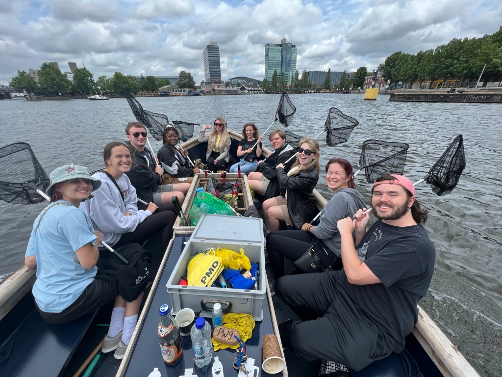 Our group split into two and boarded small boats to engage in a little friendly competition: who can collect the most trash from the canals!